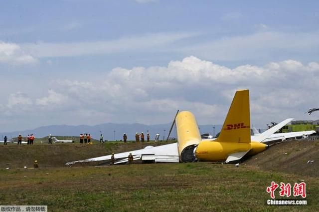 当地时间4月7日,一架DHL国际物流公司的波音货机在哥斯达黎加首都圣何塞的胡安圣玛丽亚国际机场降落时滑出跑道,机身断成两截。
