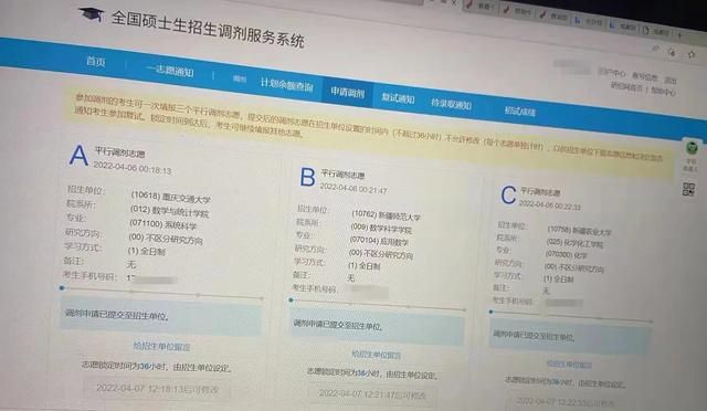 “按照规定,一次可以填报三个平行调剂志愿。”小张说。