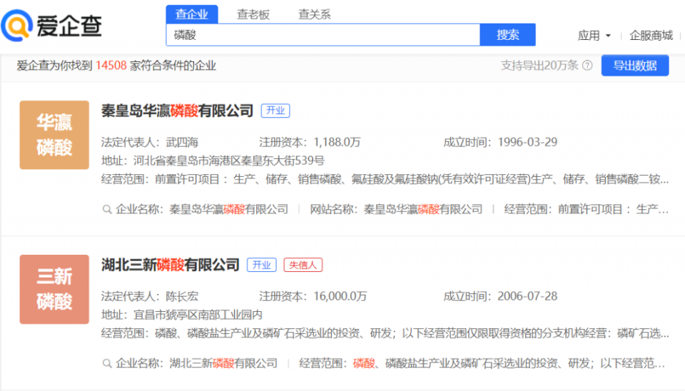 而据爱企查数据显示,全国涉及磷矿开采、贸易等相关的企业共有14508家,一年之内成立的企业有332家。