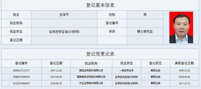 中国证券业协会官网显示,任泽平自2017年从方正证券离职后再无登记变更信息,目前并无东吴证券任职记录。