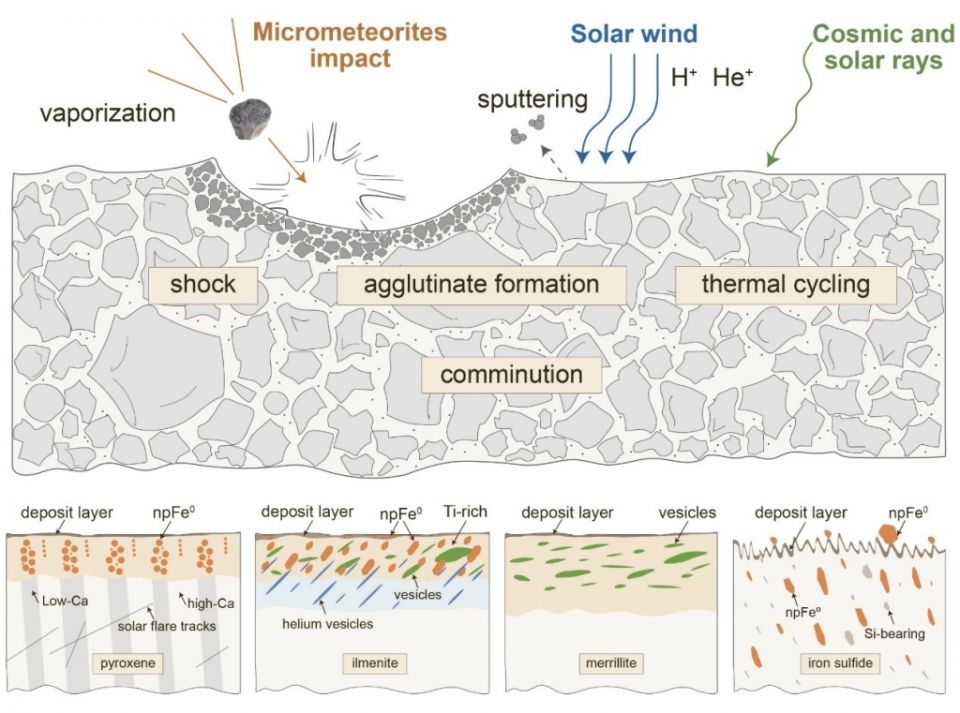 太空风化作用过程及不同矿物相的响应模型。(中科院地质与地球物理研究所供图)