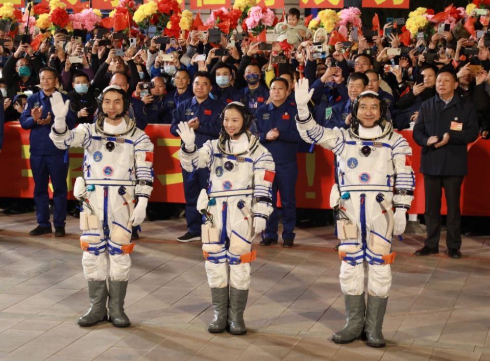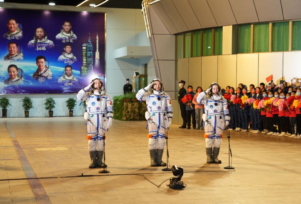 2021年10月15日晚,神舟十三号载人飞行任务航天员乘组出征仪式在酒泉卫星发射中心问天阁广场举行。翟志刚、王亚平和叶光富即将开启为期6个月的飞行任务。