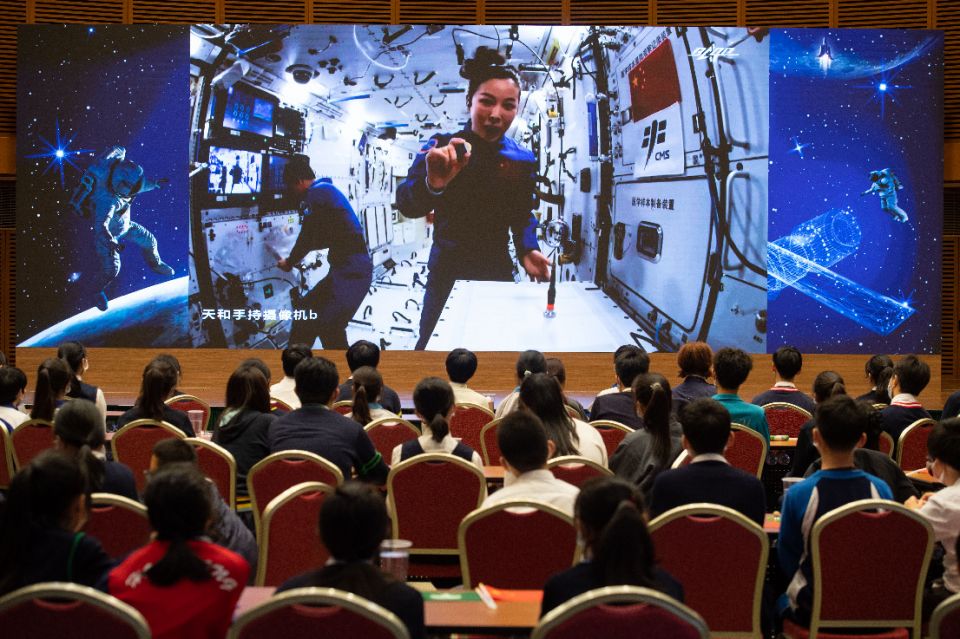 2021年12月9日,“天宫课堂”第一课开课,神舟十三号乘组航天员翟志刚、王亚平、叶光富在空间站进行太空授课。