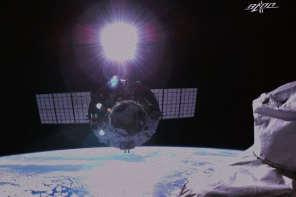 2022年1月8日,神舟十三号航天员乘组进行手控遥操作天舟二号货运飞船与空间站组合体交会对接试验,航天员通过手控遥操作方式控制货运飞船。