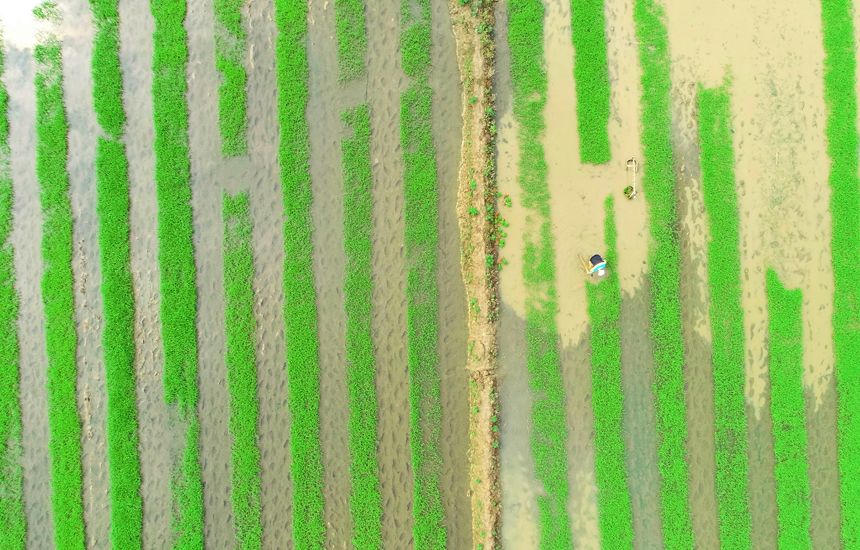 人民网南昌4月20日电 随着天气逐渐回暖,春耕备耕生产拉开序幕,在江西省丰城市洛市镇田间地头随处可见农民们下田插秧、春耕播种的身影。湿润的空气中弥漫着泥土和秧苗的清香,处处彰显一片春意盎然的景象。