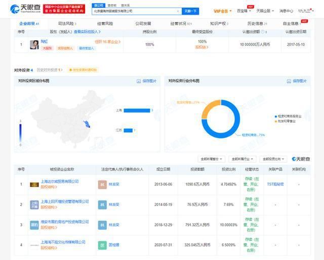 陶虹直接关联的16家公司中14家为存续状态,包括上海达尔威贸易有限公司、海南省洋洋得意文化传播有限公司、北京真乐道投资管理有限公司等,版图涉及影视、传媒、贸易、投资等。