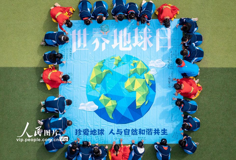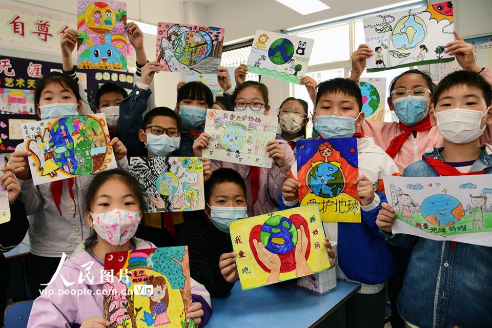 2022年4月22日是第53个“世界地球日”。为增强学生关爱地球、守护家园的意识,新疆昌吉市各学校开展形式多样的“珍爱地球 人与自然和谐共生”世界地球日主题教育活动,将节约资源、爱护环境的意识和理念根植学生心中。杨斌摄(人民图片网)