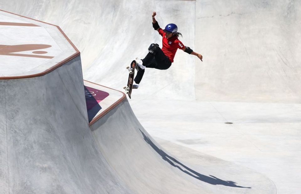 ↑2021年8月4日,日本选手四十住樱夺得东京奥运会滑板女子碗池项目冠军。新华社记者曹灿摄