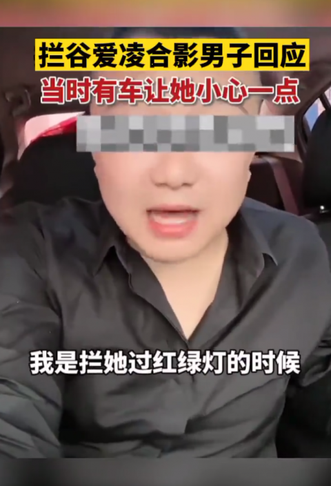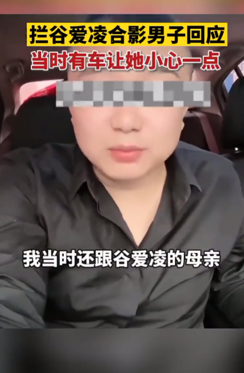 4月25日,拦停谷爱凌合影男子发声,他表示当天自己吃完饭偶遇谷爱凌锻炼, 她母亲骑着自行车陪同,合影前还和谷爱凌的母亲说了一句。他发视频澄清:“当时拦谷爱凌过红绿灯的时候正好有车,确实没有故意拦。”他还表示如果自己影响到谷爱凌,向谷爱凌及家人道歉。此前,“谷爱凌跑步被男子多次拦截并摘口罩合影”引发网友热议。公开视频显示,谷爱凌在跑步中被一名男子拦截在路上,视频中人来车往,相当危险。谷爱凌配合拍照后,该男子居然拦住了谷爱凌,疑似还有身体接触,引发网友集体谴责“没素质没礼貌” 。