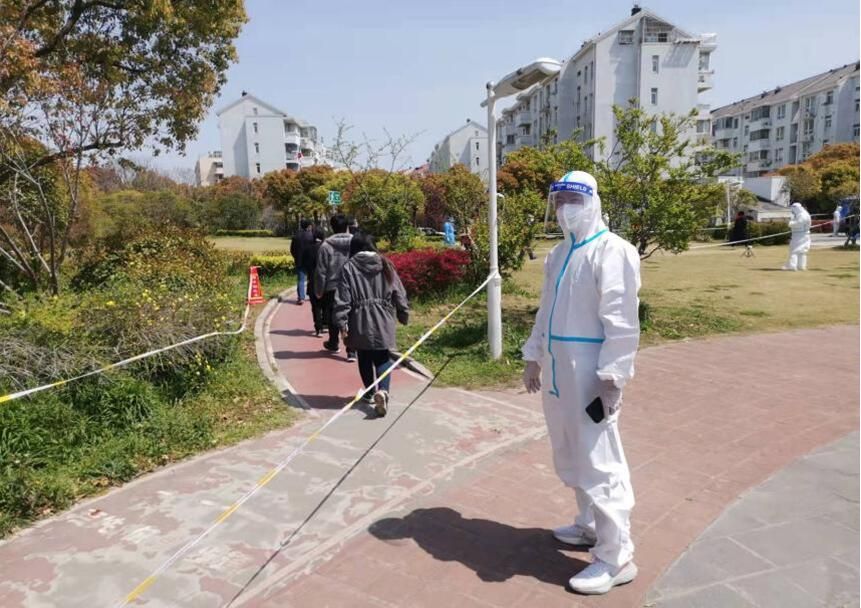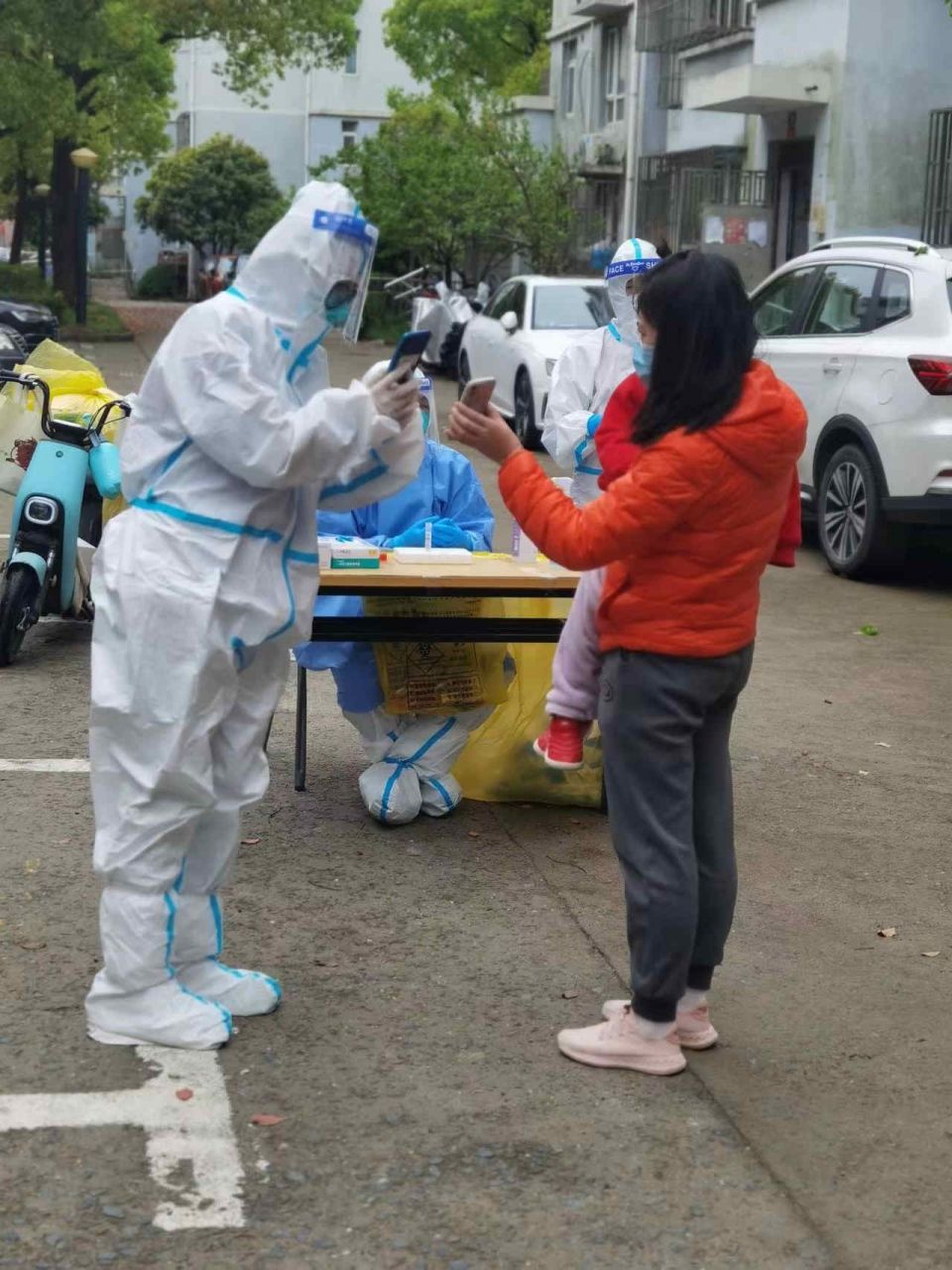 我们每天穿着防护服在小区协助做核酸、发抗原、快递分拣、发放物资……有时热得汗流浃背,有时被风吹得瑟瑟发抖,但我在人群中的呐喊声是高昂的:“核酸码找出来,手机屏幕调到最亮。”