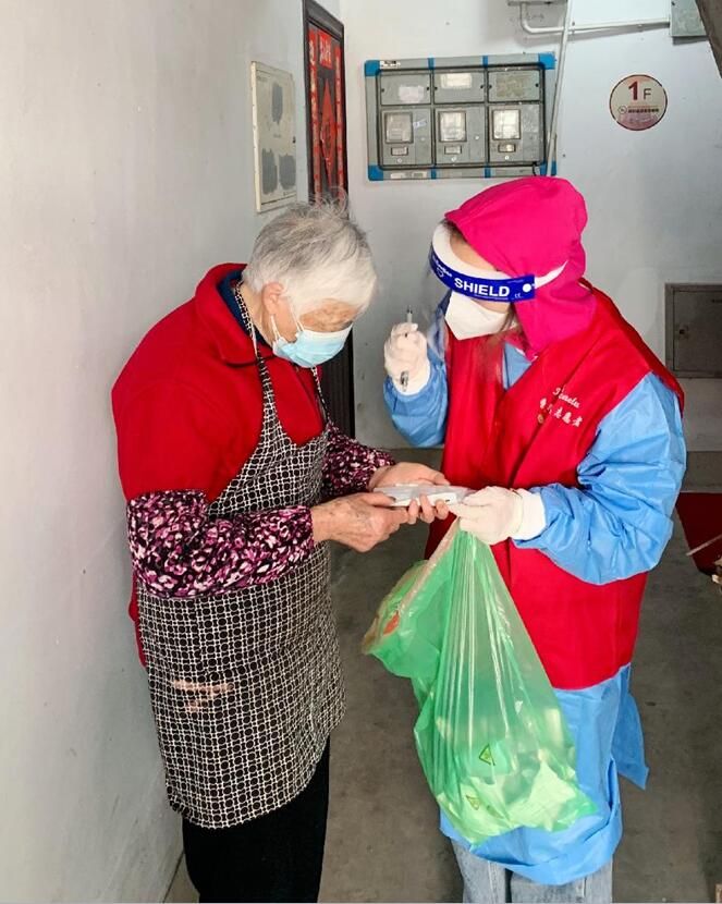 在封控管理期间,我变身“巡逻员”“采购员”“快递小哥”等多种角色。在了解许多孤寡老人“买菜难”后,迅速协同志愿者们为老人采购生活物资,送上“爱心菜”……