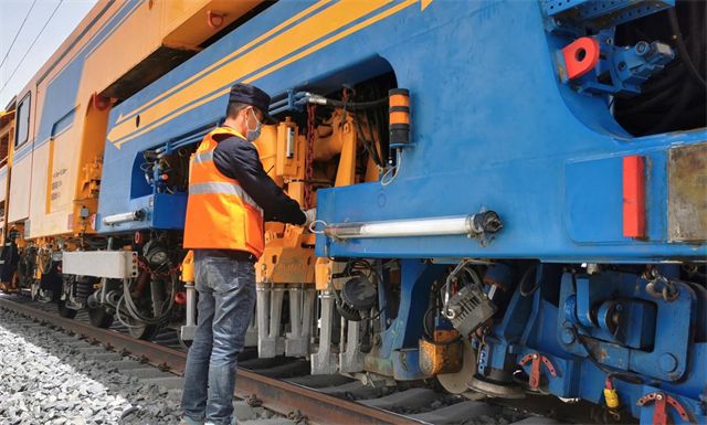 作为铁路线路“大夫”,捣固车在作业时使用电子摆、一条拨道弦及两条抄平弦对铁路线路作业前的水平及方向进行测量,并及时反馈到程控系统中去,程控系统根据线路原始数据将轨道抬升至测量系统确定的水平位置,并对其进行横向定位,然后采用捣镐将轨枕下的道砟压实,这一套独具特色的“诊疗”方法被铁路工作人员称为“悬丝诊脉”。格库铁路作为中国西北路网骨架的重要组成部分,贯通青新两省区的大动脉,直接缩短了青新藏三省区的时间和空间距离,同时也是中国通往西亚、地中海和黑海地区的陆路运输大通道之一,途经戈壁、沙漠草原等多种自然景观,被誉为“大漠新丝路”。(甘海琼、姚江红、雒国智)