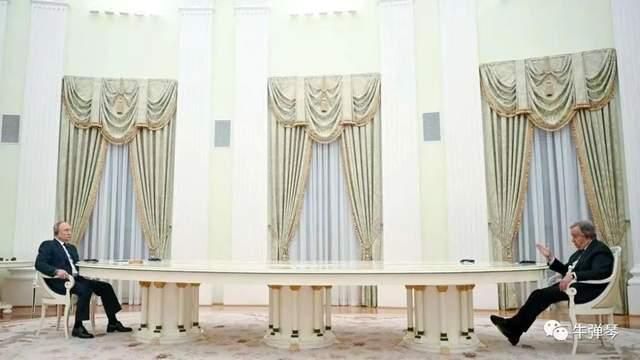 联合国秘书长古铁雷斯,在享受了普京的长条桌待遇后,去了乌克兰,乌克兰肯定不会摆出长条桌。