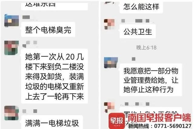 “我愿意把一部分物业费给她,让她停止这种行为……”该小区其他业主也曾在业主群里抱怨。