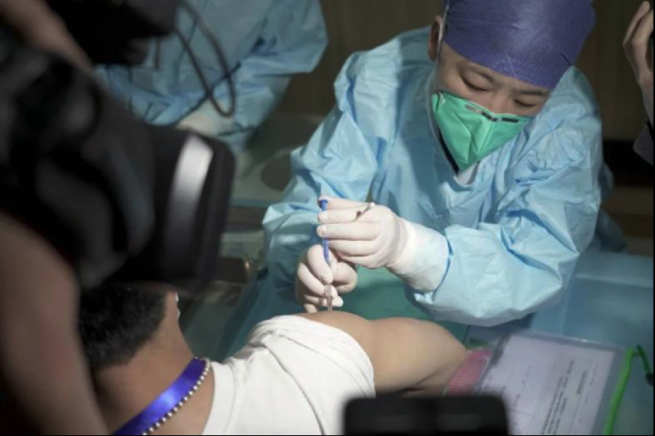 中国生物奥株新冠疫苗临床试验志愿者接种。树兰(杭州)医院供图