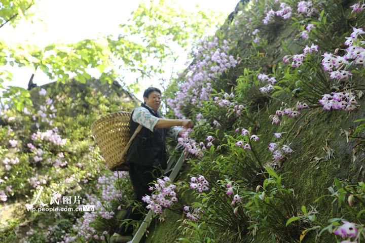 首页 贵州赤水:丹霞石上 石斛花开 2022-05-06 08:28:46 分享 近日,贵州省赤水市长期、宝源等乡镇种植的金钗石斛花陆续进入盛花期,当地农民忙着采摘、加工鲜花供应市场。赤水金钗石斛为中国传统中药材,近年 来,赤水 市积极推进生态农业产业与乡村振兴融合发展,采取“党支部+合作社+农户”模式,引导农户在丹霞石上种植金钗石斛9万余亩,带动当地农民增收致富。王长育 摄(人民图片网)