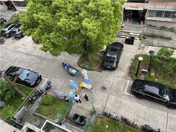 在楼上看邻居们核酸检测