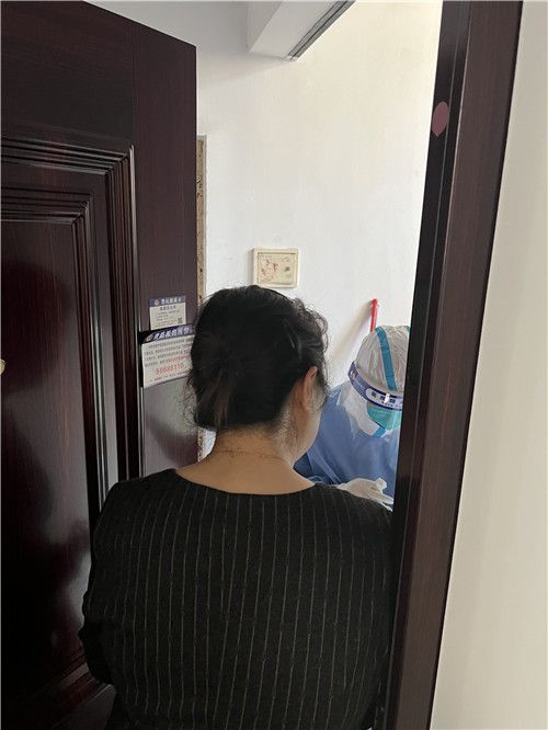 4月26日下午,医护上门给母亲核酸检测