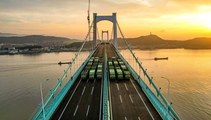 科创 浙江温州:北口大桥顺利完成荷载测试 2022-05-09 08:19:17 分享 2022年5月7日,浙江省温州市瓯江北口大桥主桥上下两层进行静力荷载测试。据悉,144辆总载重近5000余吨的重型卡车分别开上瓯江北口大桥主桥的上下两层,有序行驶到固定的位置,依次对大桥开展静力、动力荷载试验,对大桥的真实承载能力进行全面的评定测试。据了解,瓯江北口大桥是甬台温高速公路复线和南金公路两大项目跨越瓯江的控制性工程,大桥上层为甬莞高速,下层为G228国道,全长7.9公里,其中跨越瓯江的主桥长2090米,是世界首座三塔四跨双层钢桁梁悬索桥。刘吉利摄(人民图片网)