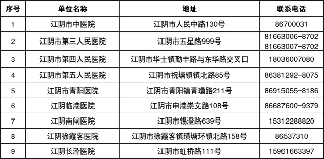 附:江阴开设发热门诊医疗机构名单(2022年5月7日更新)