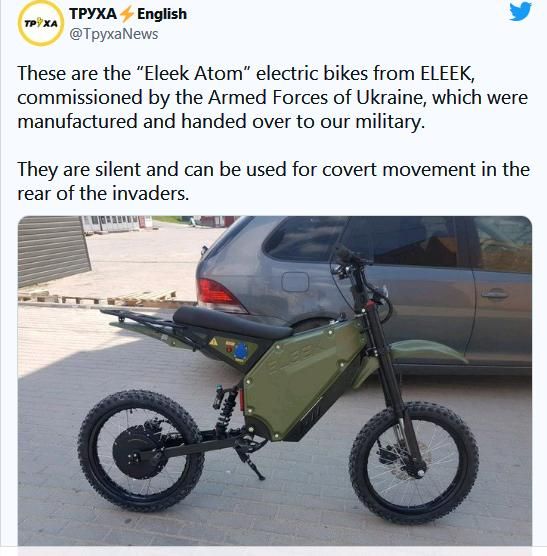 在乌东地区作战的雇佣军“格鲁吉亚军团”指挥官马穆拉什维利说,他需要快速、安静的车辆,以便将狙击小组带到靠近俄军的地方,然后在俄军向他们的阵地报复性发射火炮之前迅速离开。“我们必须快点离开,所以非常需要电动自行车。”