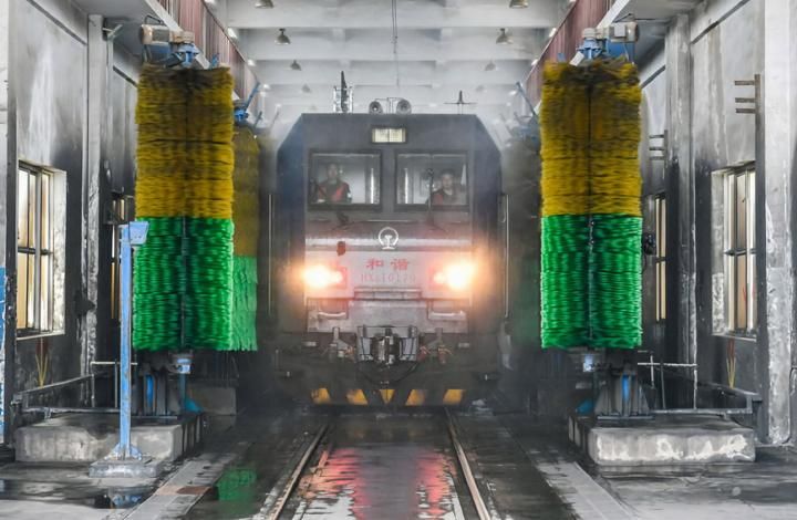科创 “重载列车4S店” 全面检修保安全 2022-05-14 08:32:36 分享 为保障大秦铁路运输安全稳定,完成任务后的重载列车会在中国铁路太原局集团有限公司湖东电力机务段进行全面“体检”,工作人员对机车走行部、电路系统、制动系统等关键部位进行深度检修,消除设备安全隐患,保障列车平稳运行。新华社记者 曹阳 摄