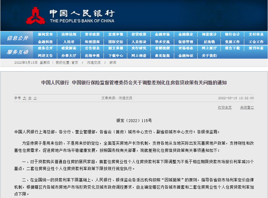 15日,中国人民银行、银保监会发布通知,调整首套住房商业性个人住房贷款利率下限。这是贷款市场报价利率改革以来,首次下调首套房贷款利率下限。