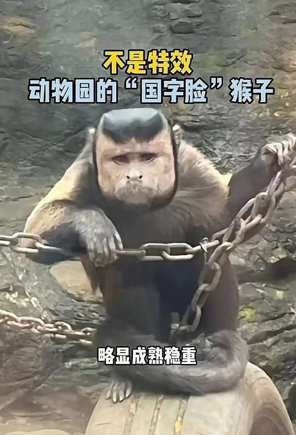 5月14日,浙江绍兴的杨女士逛动物园的时候偶然看到一只猴子长了一张“国字脸”。