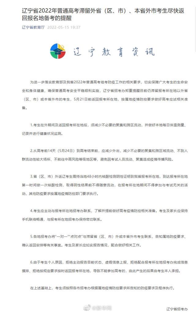 首页 高考倒计时!多地喊话滞留外地高考生尽快返回备考 2022-05-16 15:03:19 分享 距离2022年高考不到一个月,5月15日,又有多地喊话滞留考生:尽快返回报名地备考!小编温馨提示:关注官方信息,合理规划时间哦!来源:@新华网