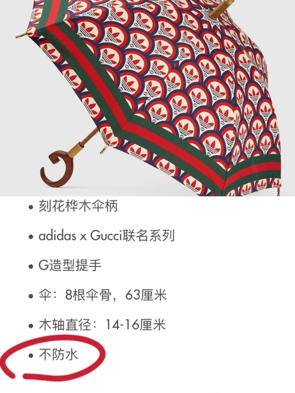 炣燃科技5月17日讯(米娜)近日,奢侈品牌Gucci和运动品牌adidas推出一款联名系列伞,因售价高达11100元却“不防水”引发热议,相关话题迅速冲上微博热搜。