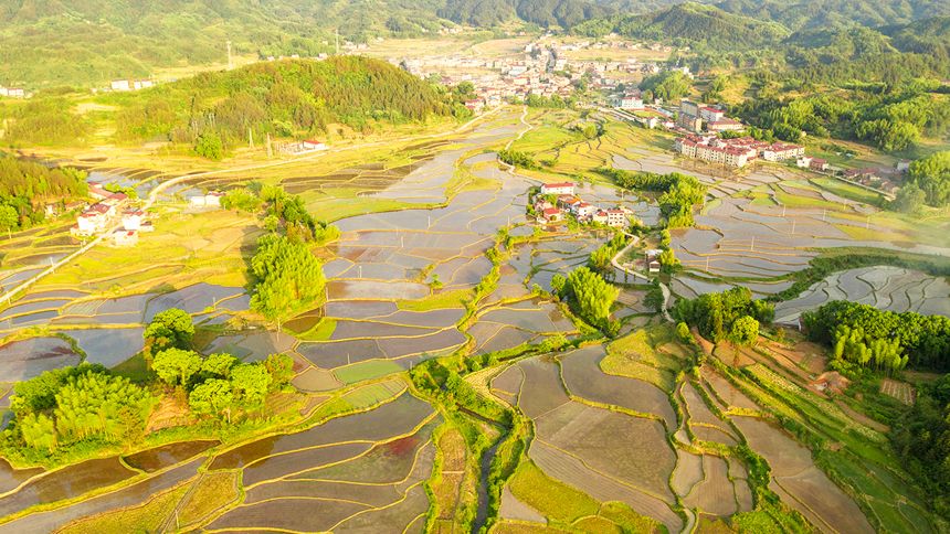 首页 江西武宁:初夏梯田美如画 2022-05-20 08:38:05 分享 航拍镜头下的梯田与民居相互衬托,呈现出一幅夏日田园美景。翁第亮摄人民网南昌5月19日电 初夏时节,江西九江市武宁县的梯田蓄水丰盈,纵横阡陌,无人机视角下,梯田、青山、村庄交相辉映,勾勒出一幅美丽的田园画卷。(邱烨、翁第亮)
