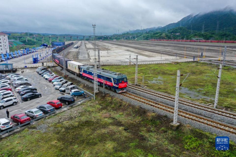 科创 打通成渝物流新路径 成渝地区双城经济圈货运班列首发 2022-05-20 08:43:05 分享 5月19日,首列成渝地区双城经济圈货运班列(重庆江津-成都青白江)在重庆江津小南垭铁路物流中心顺利发车(无人机照片)。当日,首列成渝地区双城经济圈货运班列(重庆江津-成都青白江)在重庆江津小南垭铁路物流中心顺利发出,它共载货值300多万元的卷纸、粮油、汽摩配件等货品通过铁路直达成都城厢站。开通后的成渝班列可紧密衔接西部陆海新通道、中欧班列和长江黄金水道,提高成渝地区铁路货物运输占比,加强成渝两大陆港型国家枢纽互联互通,推进内陆开放高地建设。新华社记者 唐奕 摄