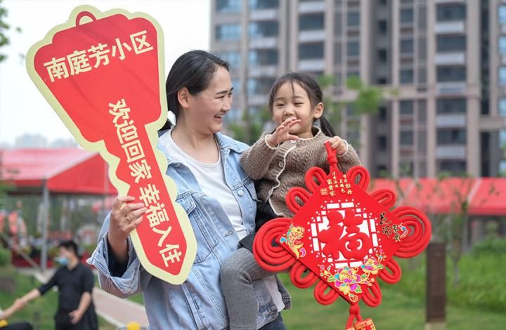 人民网合肥5月20日电(记者 苗子健)5月20日,合肥包河区常青街道回迁居民喜领新房钥匙。本次分房的南庭芳小区共涉及常青街道油坊岗、淝南、凌大塘、竹西、仰光5个社区。