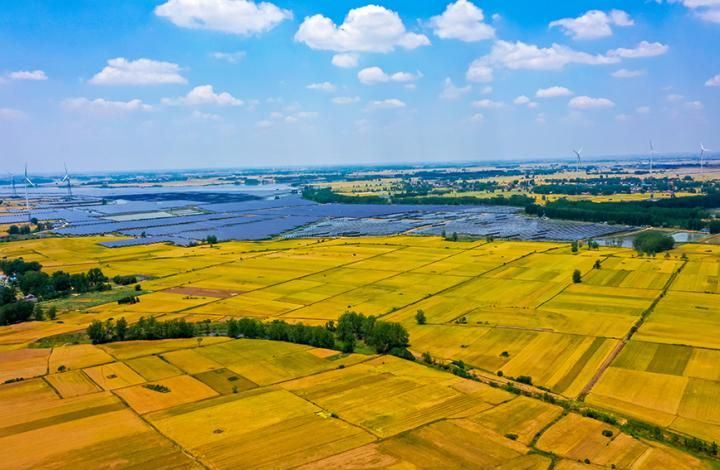 首页 江苏泗洪:水晶天 黄金地 2022-05-22 09:51:14 分享 2022年5月20日,小满前夕,在江苏省宿迁市泗洪县天岗湖乡,蓝天白云、丘陵起伏,金色的麦田连成一片。矗立的风力发电塔、水上连片的光伏发电,源源不断地输送绿色能源,推动了乡村振兴崛起。陈玉摄(人民图片网)