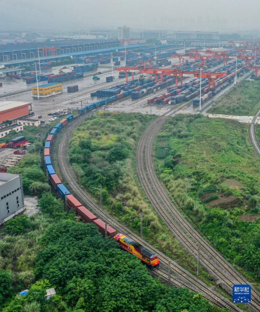 首页 全国首趟陆海新通道中老铁路“铁路快通”出境班列开行 2022-05-22 09:58:30 分享 5月21日,全国首趟陆海新通道中老铁路“铁路快通”出境班列在重庆团结村中心站发车(无人机照片)。5月21日上午,一趟载有重庆本地食品、农用机械的陆海新通道中老铁路出境班列从重庆团结村中心站顺利启运,将在4天后到达老挝万象,这也是全国首趟运用“铁路快通”模式出境的陆海新通道中老铁路班列。“铁路快通”即“铁路进出境快速通关”模式。运用“铁路快通”模式通关,能节约通关时间24小时,缩短整体运行时间1-2天。新华社记者 唐奕 摄