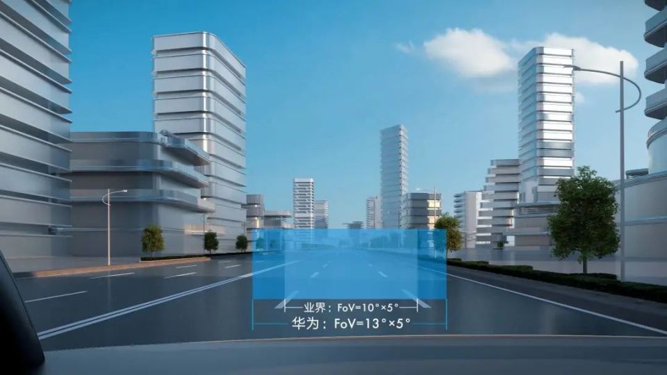 这个其实不难理解,以眼睛为顶点,虚像的两条边构成的夹角就是视场角,它分为水平视场角和垂直视场角,视场角越大,HUD 的显示面积也就越大。(是不是有种上物理课的感觉。)