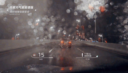 不仅如此,这套 AR-HUD 还直击痛点,做到了全天候适应,即便是在雨雪等恶劣天气之下,依然可以精准显示前方的车辆或行人。