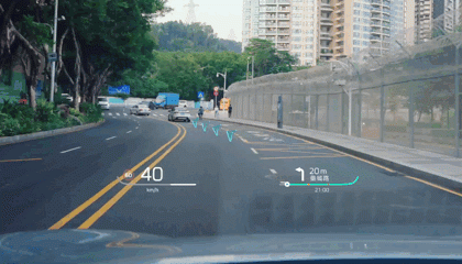 AR 的引入,则大大提升了 HUD 的实用性,直接投影到前风挡上的 AR-HUD 不仅可以结合道路情况,清晰地为驾驶员呈现导航信息,部分车型还拥有跟车目标识别、碰撞预警等功能。