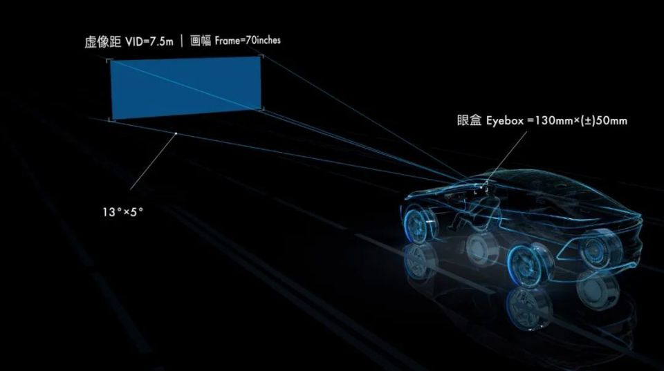 飞凡 R7 的视觉增强 AR-HUD 平视系统拥有 13°*5°的超广视角(据了解,这也是目前全球量产车型最大视场角),可以形成一个位于 7.5 米外的画面。