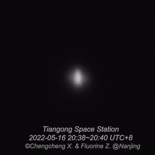 5月16日,中国空间站过境南京,天舟四号与核心舱、天舟三号组成“一”字构型。(徐成城、朱一静 提供)