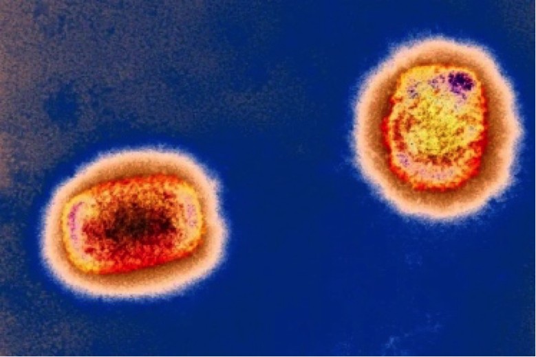 彩色透射电子显微捕获的猴痘病毒颗粒。英国《新科学家》图