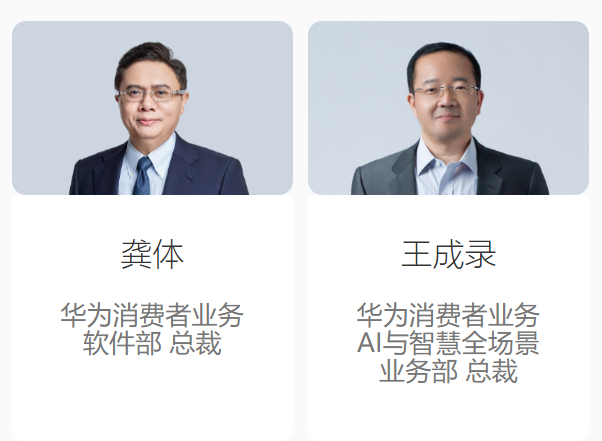 任职华为期间,王成录最后一次公开亮相是在2021年10月22日的华为开发者大会上。当时他的职位调整为华为AI与智慧全场景业务部总裁,而华为消费者业务软件部总裁由龚体接任。