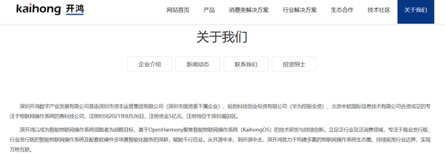 官网介绍显示,深开鸿由深圳市资本运营集团有限公司(深圳市国资委下属企业)、哈勃科技创业投资有限公司(华为控股全资)、北京中软国际信息技术有限公司合资成立,注册时间2021年8月26日,注册资金5亿元,注册地为深圳福田区。