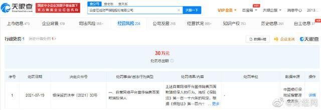 风险信息显示,该公司多次因人身保险合同纠纷、财产保险合同纠纷等被起诉。值得一提的是,2021年7月,该公司因自营网络平台宣传销售页面存在欺骗投保人的行为,被中国银行保险监督管理委员会罚款30万元。