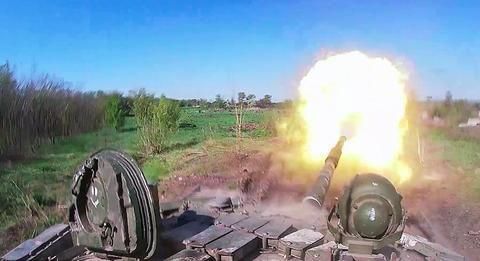 俄军T-72B3坦克打击乌军火力点。(资料图)