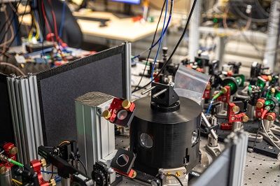 爱丽丝,隐形传态量子信息的接收者。在黑色铝制圆筒内,钻石样品被冷却到-270°C,以减少来自环境的噪音并实现量子控制。图片来源:《自然》在线版