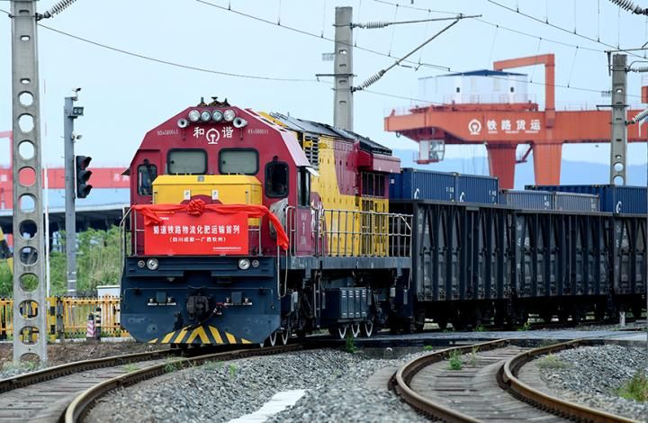 为确保化肥班列的顺利开行,中国铁路成都局集团有限公司成都北站将班列运输组织列入常态化重点工作实施,积极协调两级调度部门,加强企业货主沟通联 系,精 确掌握班列开行动态、企业运输需求,不断优化运输组织调配,强化运输安全管控,细化服务保障措施,充分发挥铁路一盘棋、全路一张网作用和优势,高度协同, 高效沟通,使西部陆海新通道发展的引擎更强劲有力。胡志强摄(人民图片网)