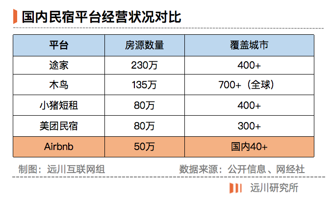 在海外,它与传统的在线酒店预订(OTA)平台Booking和EXpedia构成差异化竞争。Airbnb走非标的民宿路线,相比OTA对酒店17%的抽佣,Airbnb对房东仅抽取3%-5%,价格也更友好[15]。