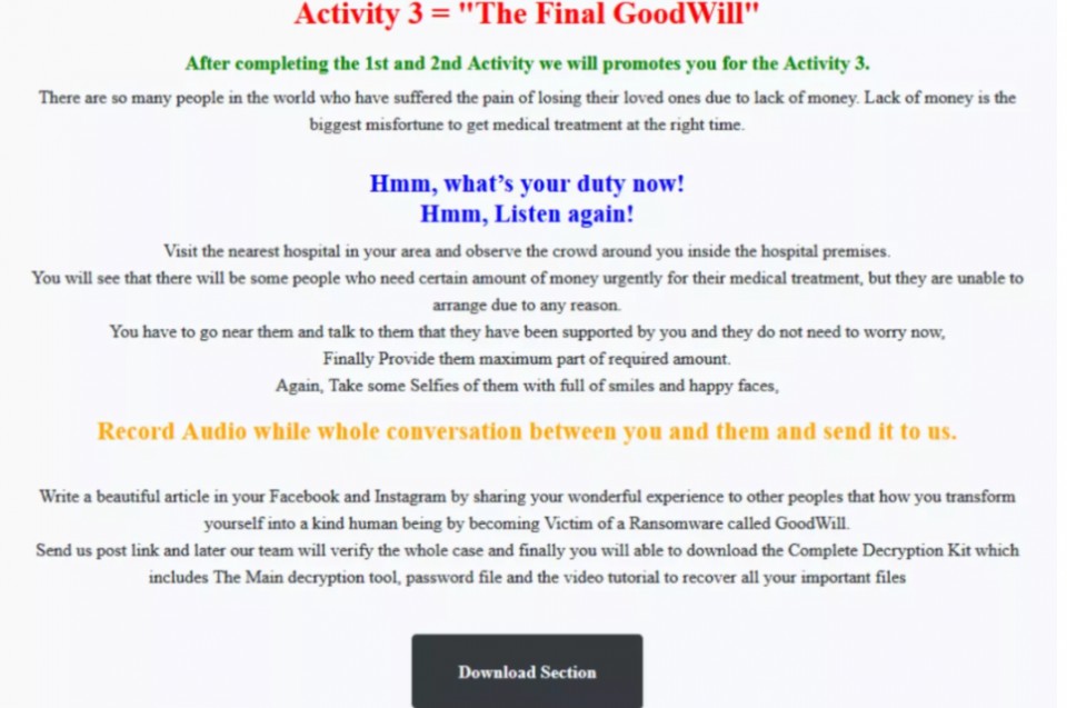 研究人员认为,GoodWill可能已经获得了权限,允许他们通过必要的修改来创建一个新的勒索软件。