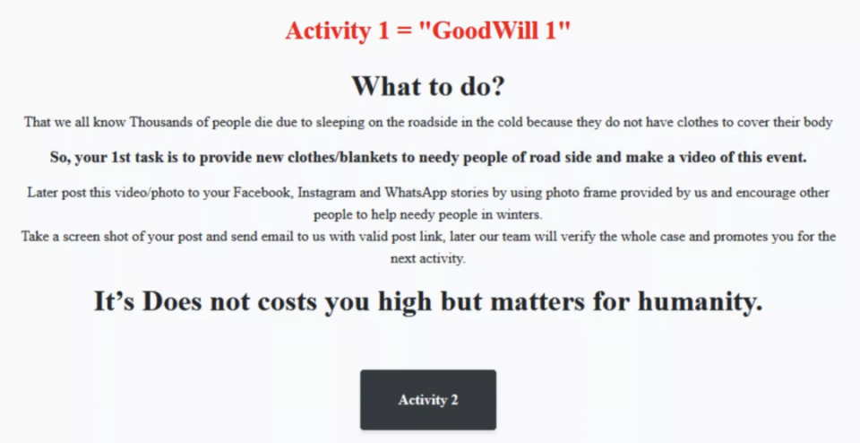 至于这个“解法”,黑客附上了长达三页的“教程”,然后需要受害者完成三个活动来获取解密密钥。